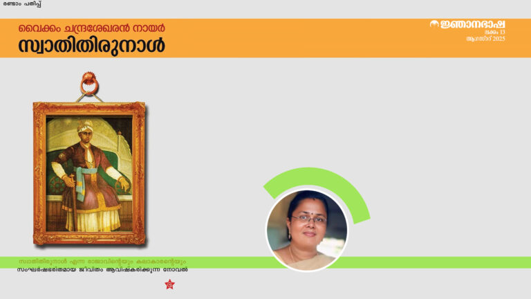 August 10, 2025പുസ്തക പഠനംചരിത്രവും ഭാവനയും ‘സ്വാതിതിരുനാളി’ൽലിലിൻ വി.ഭാസ്കരൻ August 10, 2025പുസ്തക പഠനം
