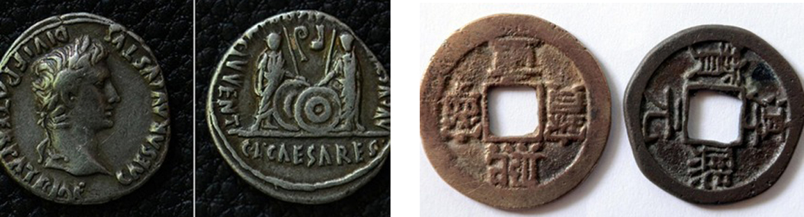 റോമന്‍ നാണയങ്ങള്‍ – ഇന്‍ഡോ-റോമന്‍ വ്യാപാരത്തില്‍ ഉപയോഗിക്കുന്ന സ്വര്‍ണ്ണം, വെള്ളി, വെങ്കല നാണയങ്ങള്‍.
